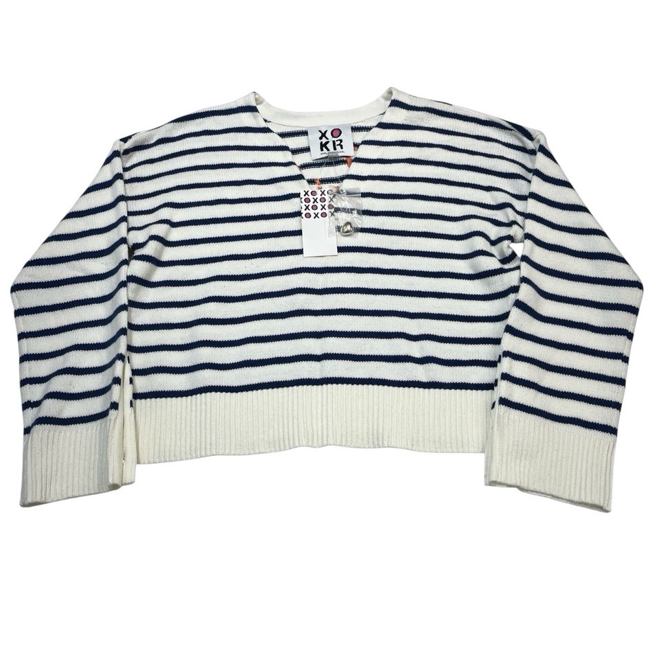 - Kerri Rosenthal XOKR Sweater M White Blue Striped Cropped Nexts Smile Is On You