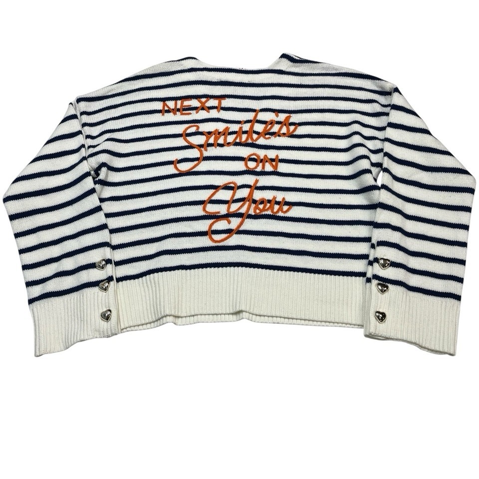 Kerri Rosenthal XOKR Sweater M White Blue Striped Cropped Nexts Smile Is On You