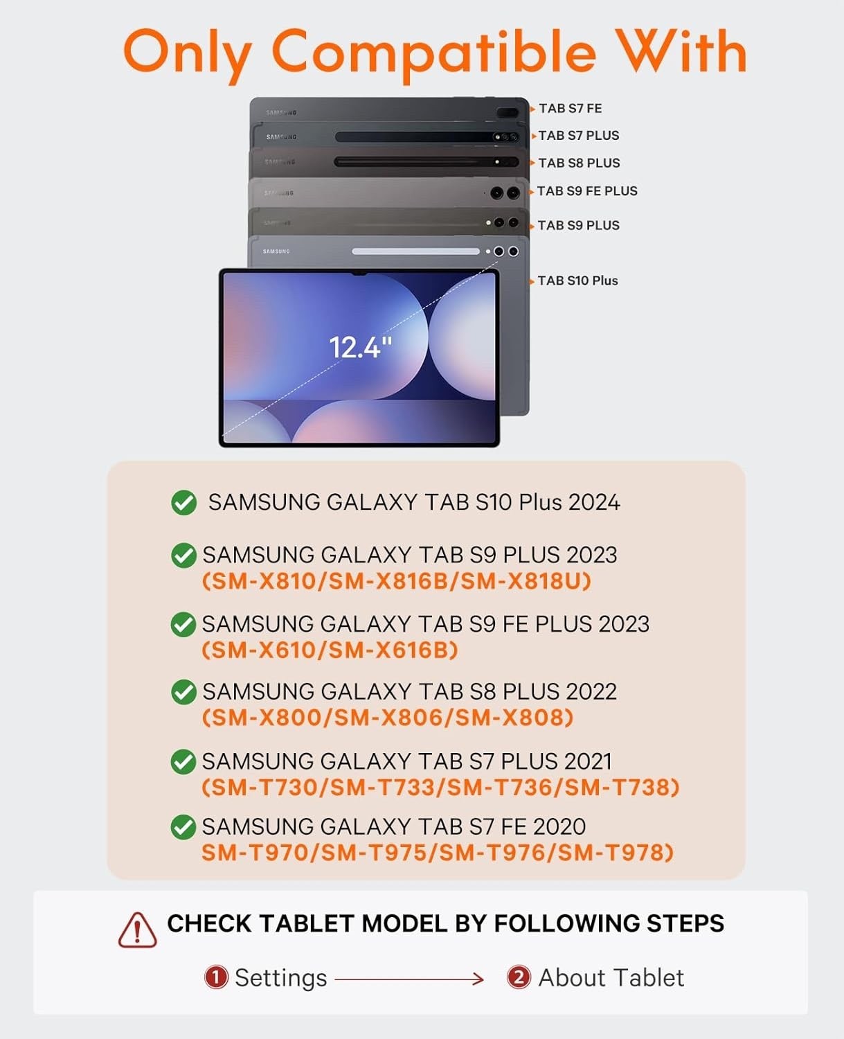 ?Compatibility?: Compatible with latest Samsung Galaxy Tab S10+ Plus AND S9 FE+, S9 Plus (Model SM-X810/X816B/X818U) 2023, Samsung Galaxy Tab S8+Plus (Model SM-X800/X806/X808) 2022, Samsung Galaxy Tab S7 Plus (Model SM-T970/T975/T976/T978) 2020 and Samsung Galaxy Tab S7 FE 5G (Model SM-T730/T733/T735/T736/T738) 2021?Please confirm the model number before purchase. Does not include the Galaxy tab Tablet or S Pen