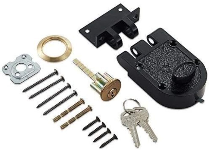 - Keyed Black Jimmy Proof Deadbolt Lock with Diecast & Shutter-Guard Features