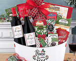 Two red wines, cabernet with smooth dark fruit flavors and pinot noir with blackcurrant and cherry notes, from Kiarna Vineyards are nestled among Wine Country favorites like sesame crackers, smoked Gouda cheese spread, dark chocolate marshmallows, Lindt milk chocolate truffles, Ghirardelli dark chocolate with caramel, spicy snack mix, Lily O'Brien's sticky toffee, waffle cookies and more to create this unique holiday wine basket.