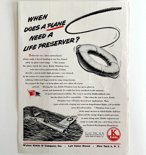 Kidde Plane Life Preserver 1940s Advertisement Lithograph Army Navy DWCC4