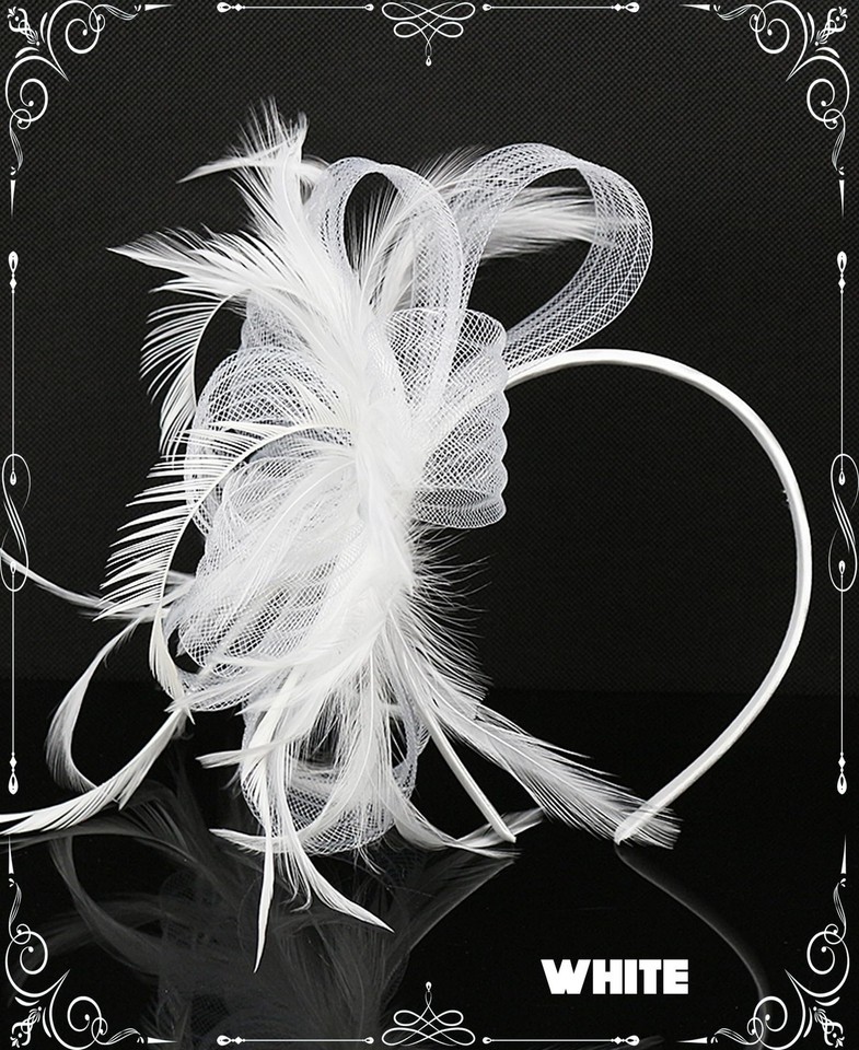 Kidukso Derby Hat Vintage Fascinator Headband Clip White