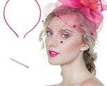 Kidukso Fascinators Hat Vintage 1923s Derby Mesh Veil Feathers Rose Red