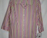 - Kim Rogers Petite 12 P Blouse Pink Purple Green Striped Shirt 3/4 Sleeve New NWT