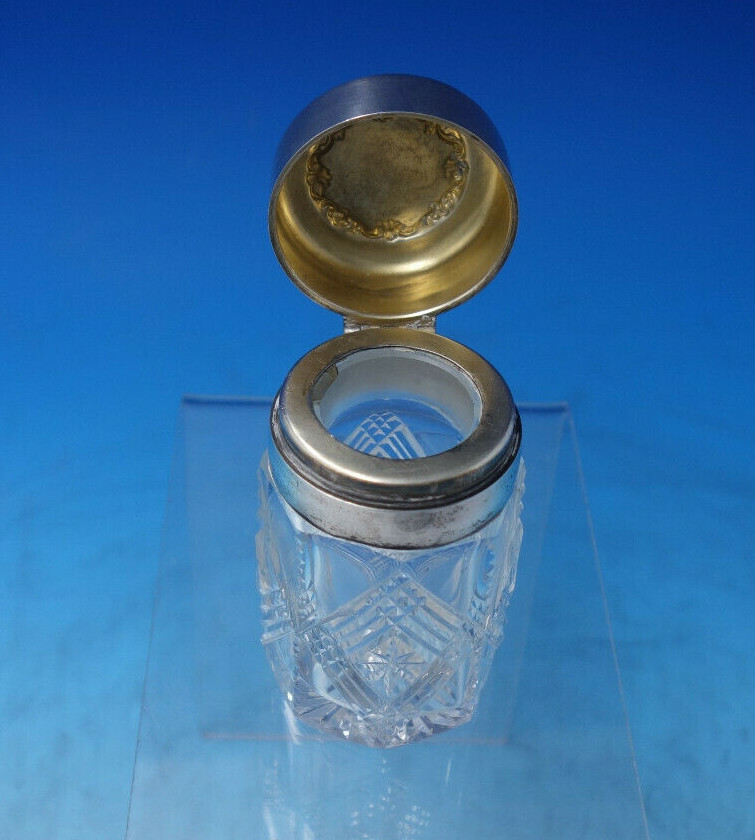 Vintage King Edward by Whiting Dresser Jar with sterling lid and cut crystal, marked #4417. This piece ,easures 3 1/2" tall x 1 1/2". It is monogrammed on the lid (see photos) and is in good vintage condition.