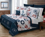 - King Size Modern Coastal Anchor Polyester Reversible Quilt Bedding Set