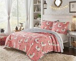 - King Size Pink Blue Reversible Floral Llama 100-Percent Cotton Quilt Set
