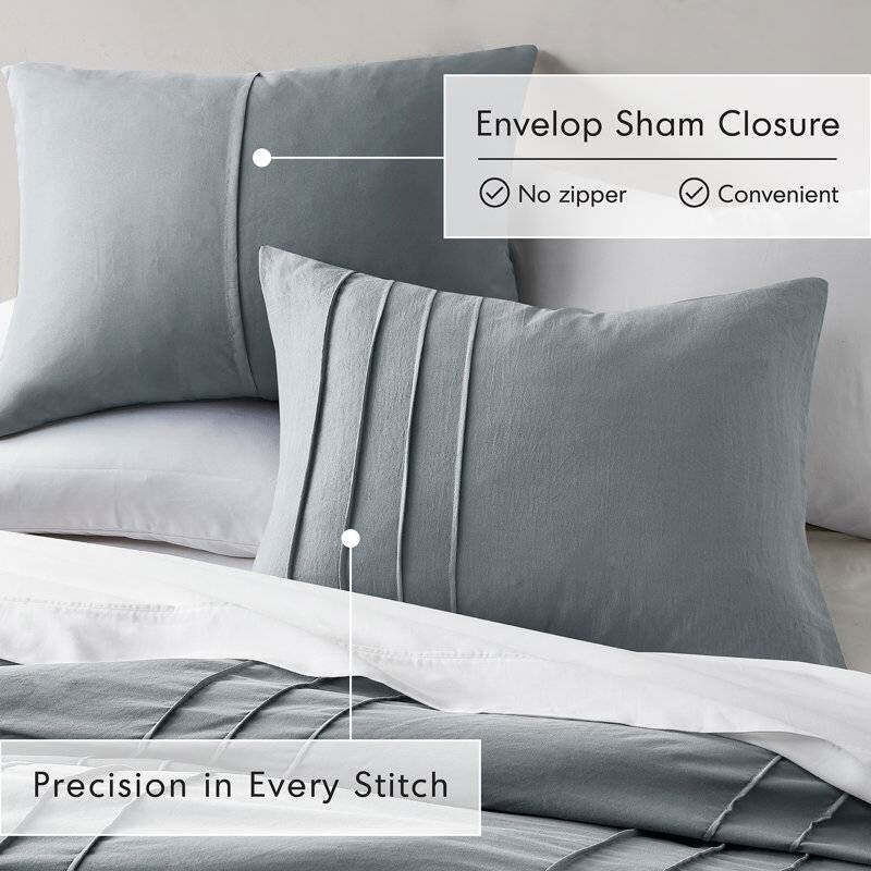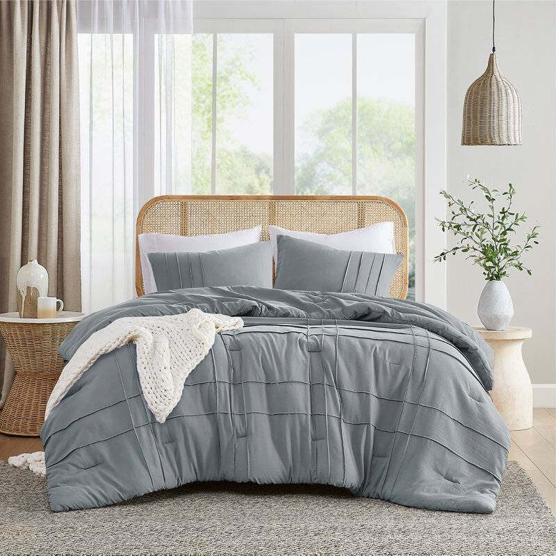 - King Size Pleated Microfiber Comforter Set in Blue Grey