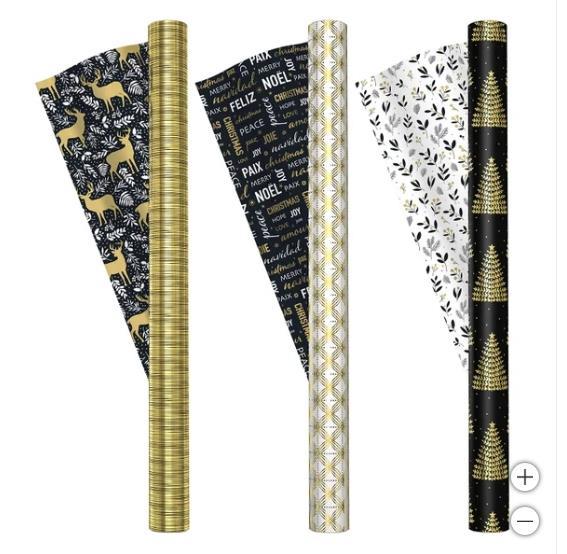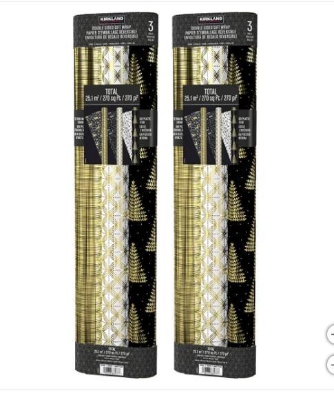 - Kirkland Signature Gift Wrapping Paper Black Gold Christmas Double Sided 6-Rolls