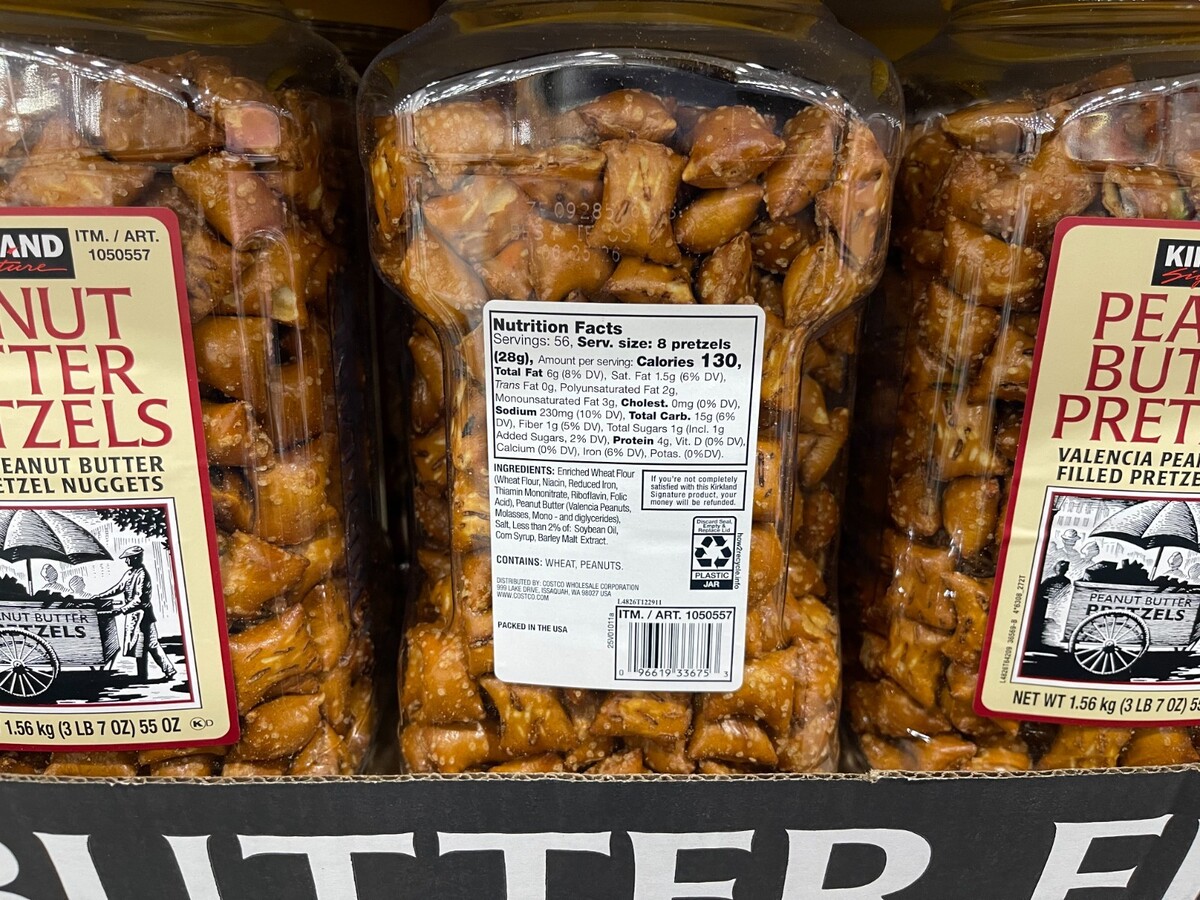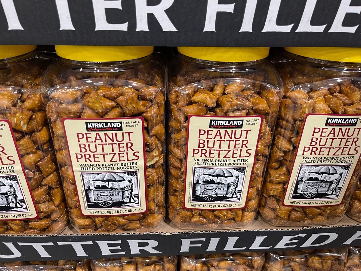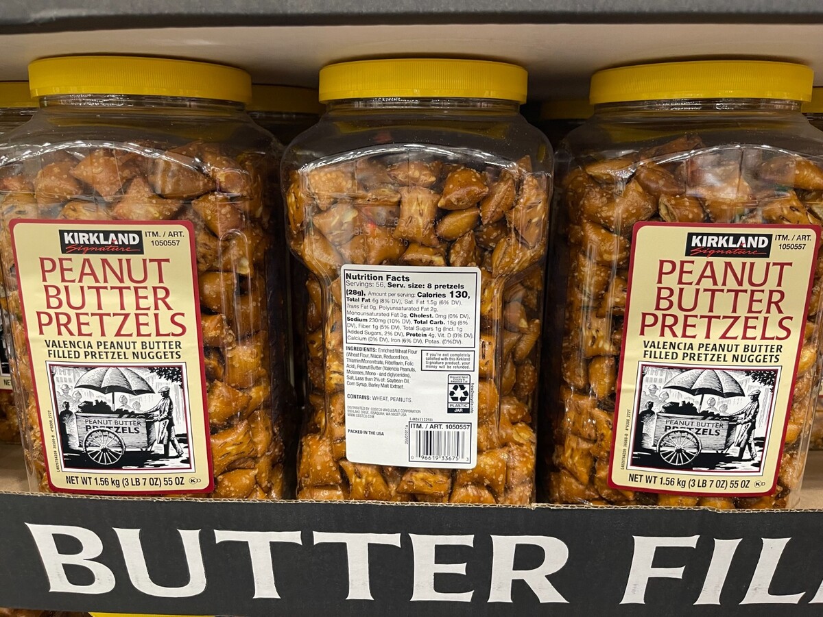 - Kirkland Signature Peanut Butter Filled Pretzel Nuggets Snacks 55 oz Plastic Jar