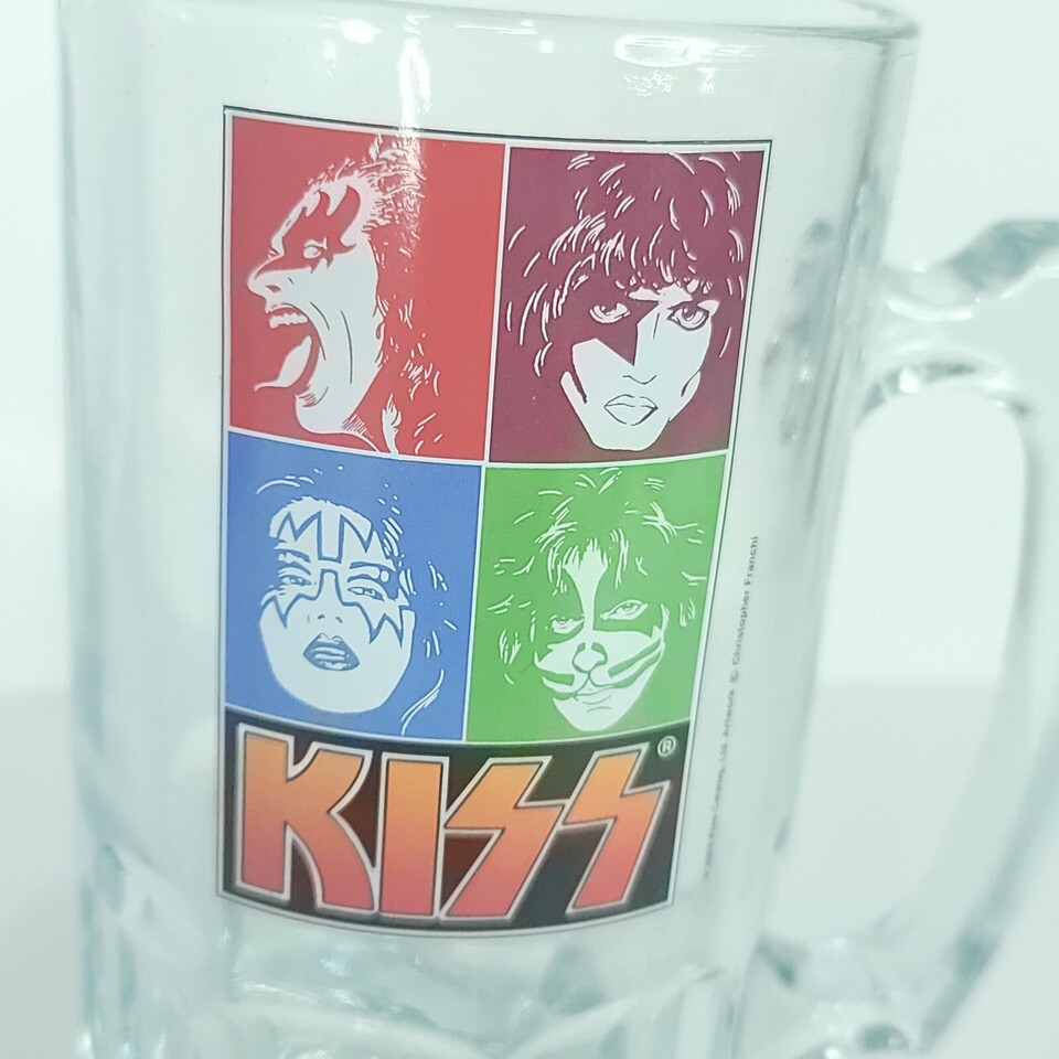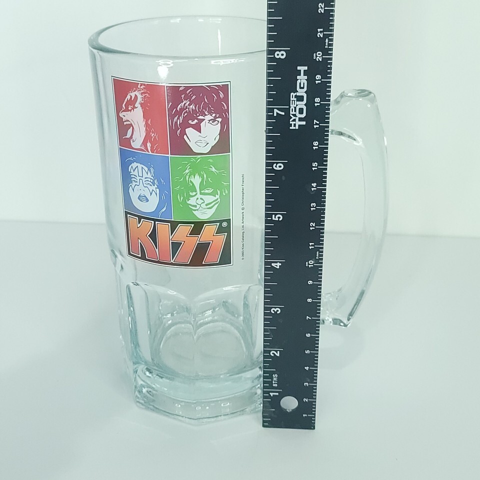 - Kiss Band Large Beer Stein 32 oz Glass Mug 7 7/8” Tall Ace Gene Heavy Duty