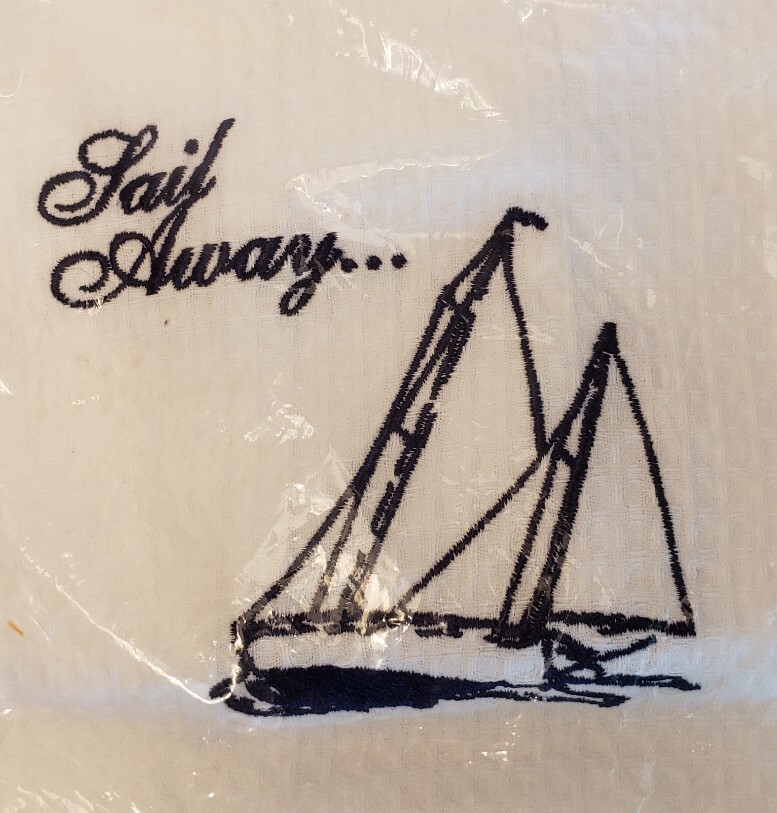 Kitchen Towel Set of 4 Waffle White Cotton Embroidered Nautical Sail Boat Gift