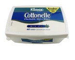 One new-old-stock and plastic-sealed container of Kleenex Brand Cottonelle Flushable Moist Wipes with Aloe. 50 Wipes. Copyright on back of box is 1997. From a smoke-free home. Ships next day!