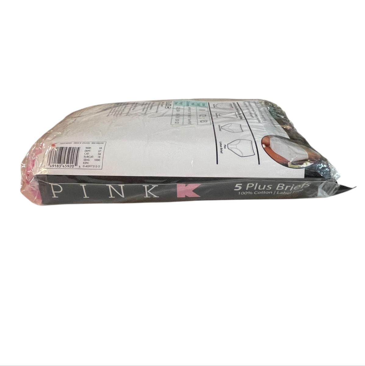 Kmart PINK Briefs Underwear Womens Plus Sz 13 Cotton 5 Pack Pink Black Floral New old stock open package. Pink K (Kmart) 5 plus briefs. 100% cotton label free with soft covered waistband. Plus size 13 (per the sizing chart on back of package: Size 13, fits hip size 56 to 59.5, pant size 30 - 32. Close to a women's plus size 4X to 5X. Includes 5 pairs: solids, stripes, and floral. Super pretty and vibrant. 100% cotton. Please see all gallery photos. We are a smoke free, pet friendly home. Have a great day! Thank you for supporting my small business! ***FAST DISCREET SHIPPING*** ***Due to nature of product, returns are not accepted, all sales are final***