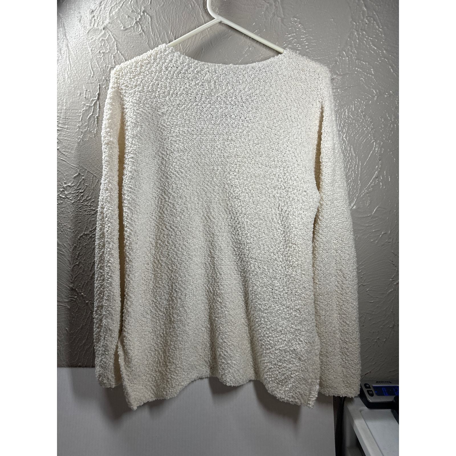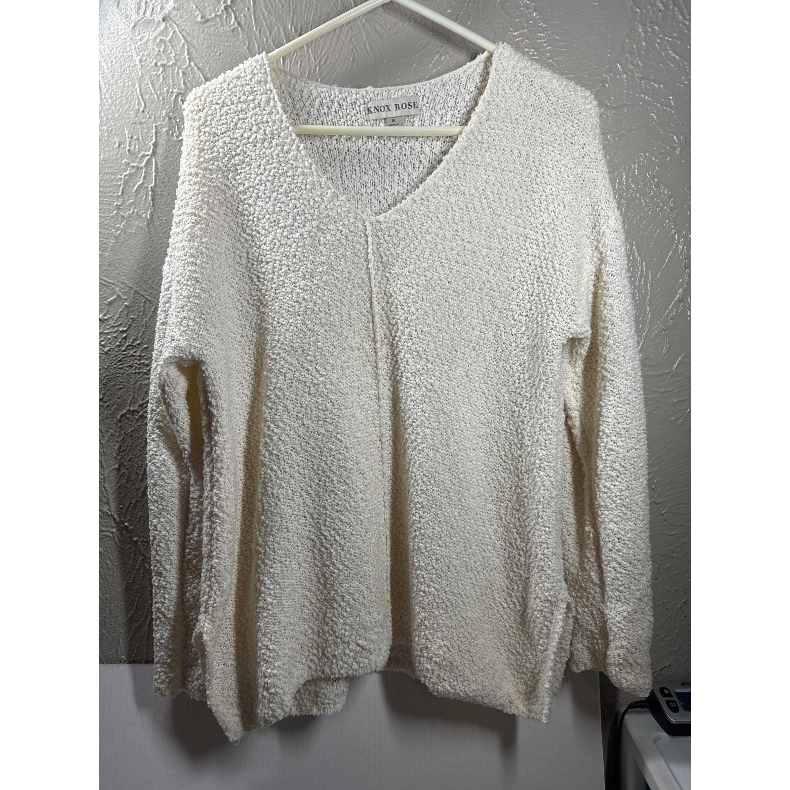 Knox Rose Sweater Pullover V Neck Popcorn Ivory Cream Slit Sides Size Medium