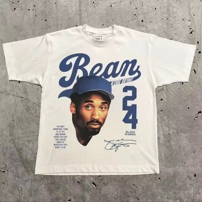 Celebrate the legacy of one of basketball?s greatest icons with this stylish, premium cotton Kobe Bryant ?Bean? shirt. Featuring a bold front print of Kobe with a vintage baseball-style twist, this tee honors his nickname ?Bean? and jersey number 24 in timeless streetwear fashion.