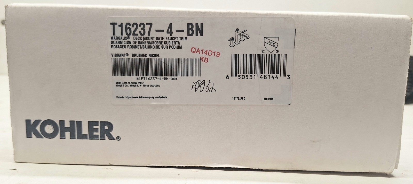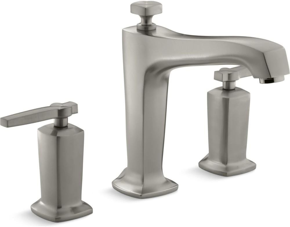 KOHLER Margaux Deck-mount bath faucet trim for high-flow valve with non-diverter spout and lever handles, valve not included BRUSHED NICKEL About this item Two lever handles allow for both volume and temperature control. 8-9/16" reach with non-diverter spout with slip-fit connection. KOHLER ceramic disc valves exceed industry longevity standards for a lifetime of durable performance. Coordinates with Margaux faucets, accessories, and showering components to complete your bathroom. KOHLER finishes resist corrosion and tarnishing. Premium metal construction for durability and reliability. Deck- or bath-mount. Trim only, requires valve to complete installation.