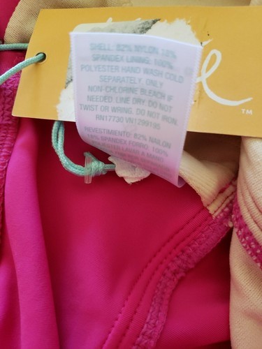 This sale is for a Kona Sol? Swimsuit Women's Size Extra Small (XS) Bra Size 32B - 34A Bust 33.5" - 34" Waist 26" - 26.5" Hips 35" - 36" Pink in Color AFB49 One (1) Piece Swimming Suit Sewn in cups offer modesty/coverage Scallop ~ One Shoulder Strap Adjustable shoulder strap lets you create the right fit Gold hardware Shell is 82% Nylon ~ 18% Spandex Body Lining is 100% Polyester Update your swim style with this swimming suit from Kona Sol? Swimsuit is new with tags Please view photos for a good description of this swimming suit Thank you!