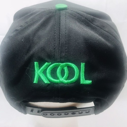 Kool Cigarettes Vintage 1990s Deadstock Embroidered Snapback Trucker Hat Cap. New Deadstock- never worn. Great condition. Shipped with USPS First Class. Super Kool Throwback Kool cigarettes adjustable snapback hat with Embroidered K on front in green and embroidered Kool on back in green on black canvas hat. This hat will probably make you look Kooler, but cannot guarantee. Thank you for visiting our store and check out our other great listings! Please see all photos for Condition and measurements. Please ask any questions prior to purchasing!