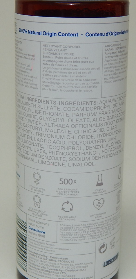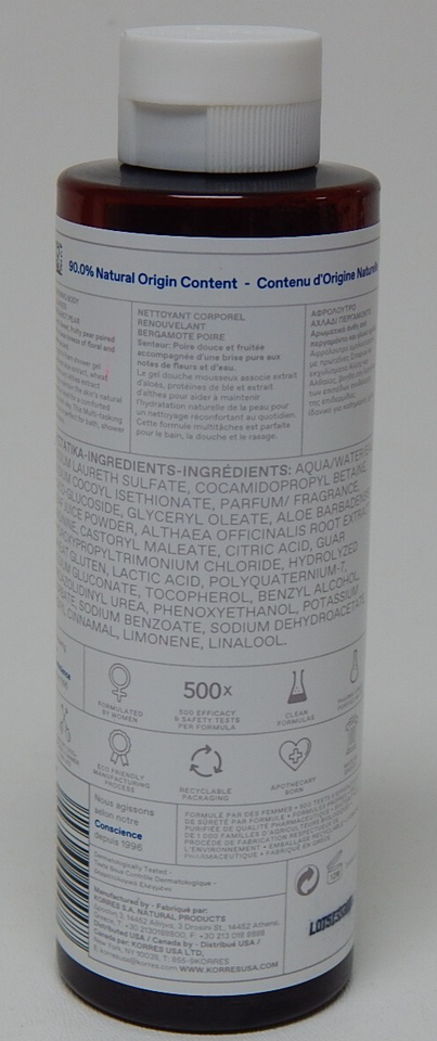 Korres Renewing Body Cleanser Bergamot Pear 8.45?fl?oz 250?ml Clean Gel-Formula