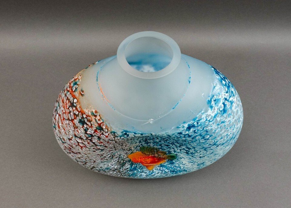 Kosta Boda Sweden Kjell Engman Signed Reef Fish Art Glass Vase #80202