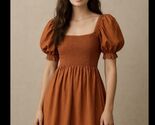 - Kourt Smocked Mini Dress Puff Sleeve Rust burnt orange Size Small