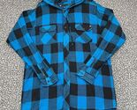 Primary image for Kr3w Shirt Men Extra Large Blue Plaid Flannel Button Up Hooded Long Sleeve XL