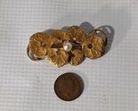 A vendre est une broche en forme de feuilles de nenuphar plaquee a froid en or signee Kramer avec perle.