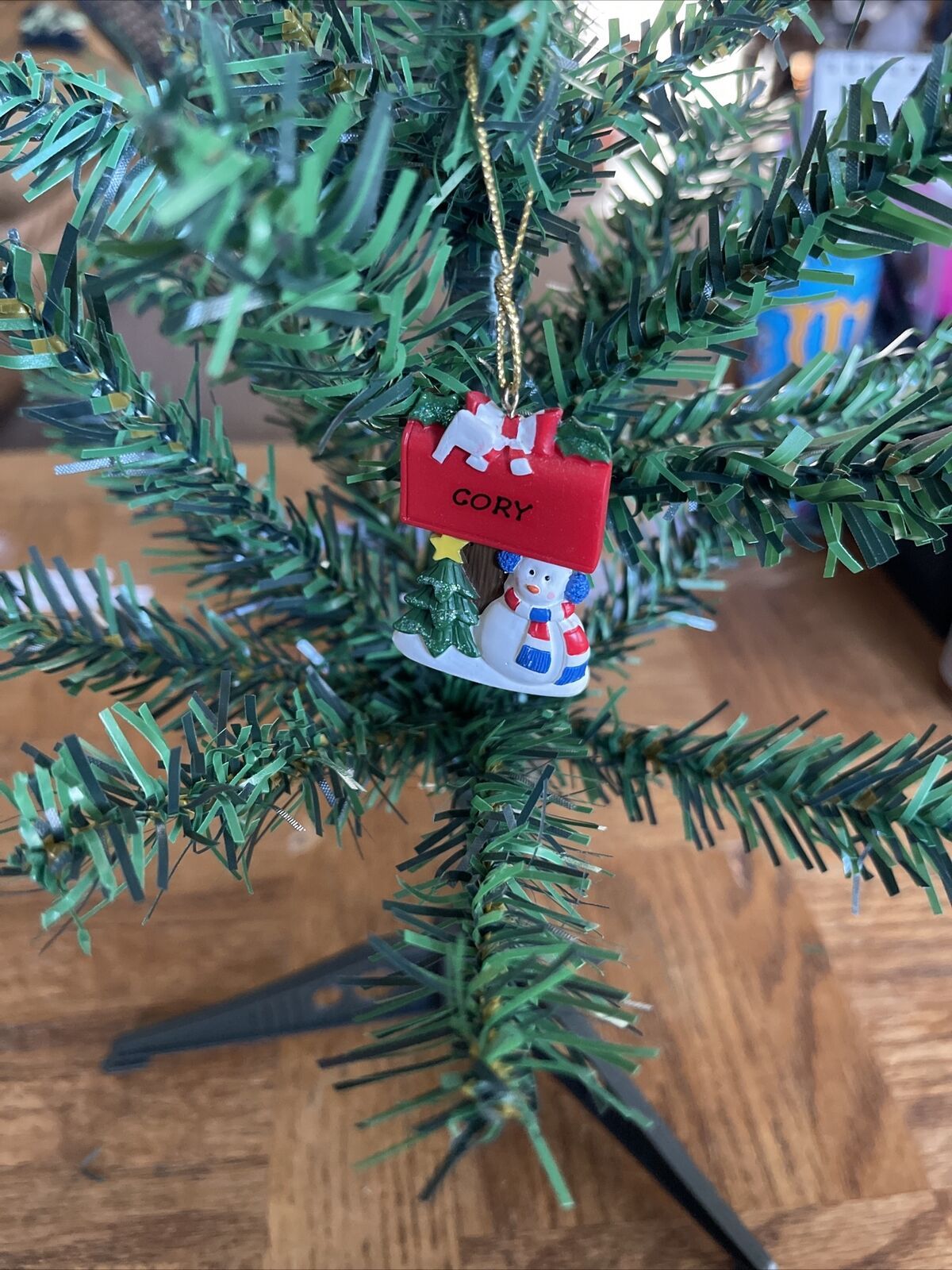 Snowman Christmas Tree Name Ornament. Brand new without tags. Shipped via usps first class mail. Small Christmas tree in pictures NOT included Box 8084