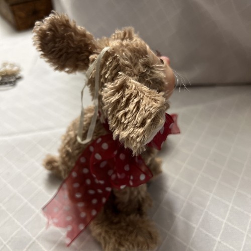 This Kurt S. Adler Bunny Ornament features wavy brown hair and blue eyes, making it a vintage artist doll with a plush design. The doll is handmade and gender-neutral, suitable for both adults and youth, and is part of a Babies theme. This single unit ornament is perfect for all occasions and is a unique addition to any doll collection.
