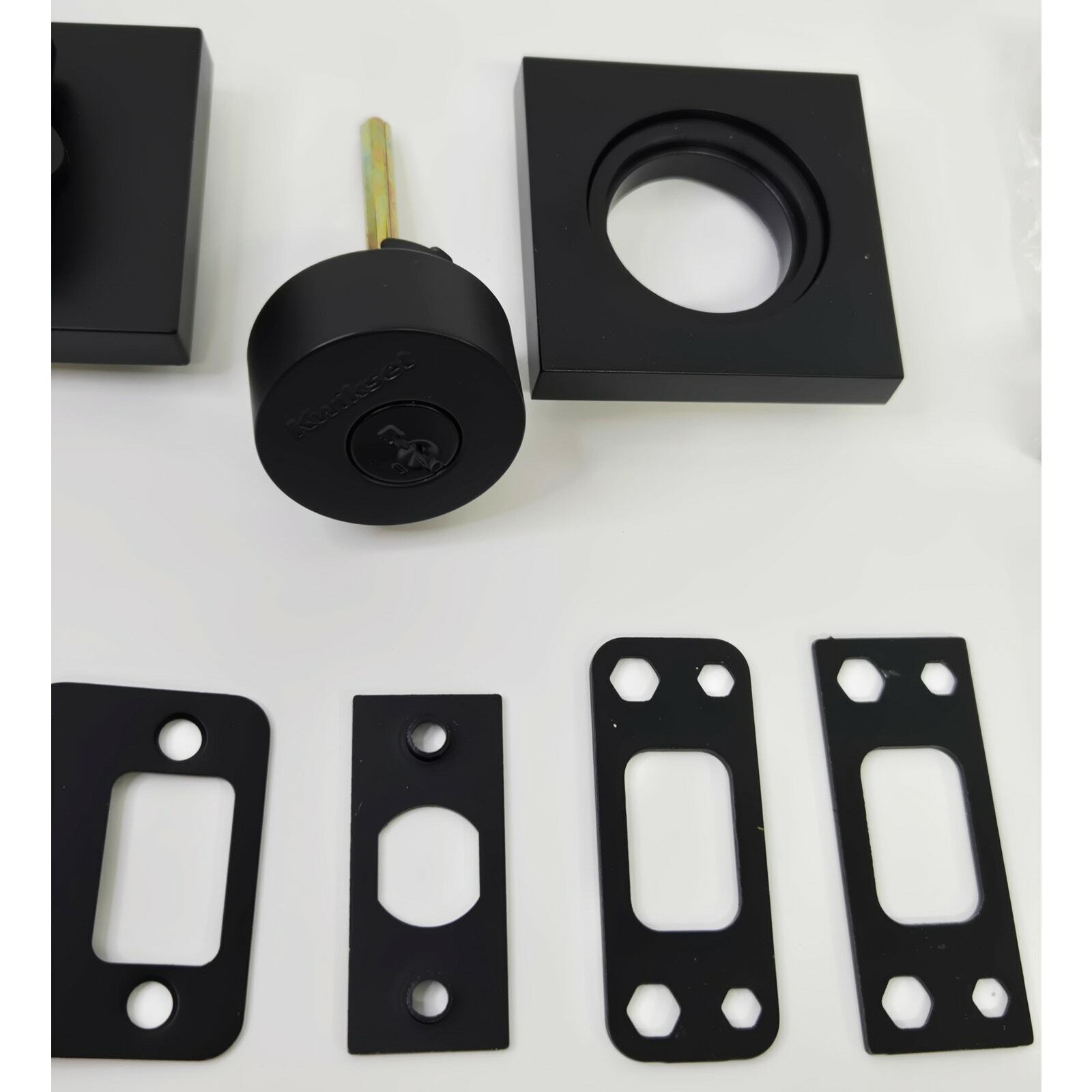 Thank you for visiting! All orders are shipped for FREE within the United States. For international sales, shipping costs will be added to the purchase price. Please contact us with your shipping address for a parcel quote. Orders before 2PM CST will be shipped the same day. Our items have never been installed and are sold as open-box products, unless otherwise noted. While the boxes may have slight damage, as shown in the pictures, the items themselves are carefully inspected to ensure they are not damaged or missing any pieces. We accept returns on items that have not been installed or damaged within 14 days of your purchase. In the rare event that an item is defective upon installation or has any blemishes not previously stated in the description, we will discuss a refund or exchange. Please, reach out if you have any issues that need to be addressed. Our goal is to achieve complete customer satisfaction. We appreciate you viewing this listing and look forward to serving you. Kwikset 91580-085 Halifax Square Single Cylinder Deadbolt with Smartkey Security - Matte Black Kwikset 158 Square Deadbolt Key One Side feature SmartKey Security Matte Black SMARTKEY SECURITY: Featuring SmartKey Security, which protects against break-in techniques and allows you to re-key in seconds MICROBAN: Deadbolt comes with Microban Technology that keeps door hardware 99.9% cleaner than unprotected surfaces EASY INSTALL: Deadbolt installs easily in minutes with just a screwdriver EXTERIOR USE: For use on exterior doors where keyed entry and security is needed IDEAL FOR: Single-family, Multifamily, and light Commercial use KEYED DEADBOLT: Operated by a key on the outside and thumb turn on the inside KEYS: Deadbolt comes with (2) keys FITS STANDARD DOORS: Fits standard sized doors 1-3/8" to 1-3/4" thick with an adjustable latch backset from 2-3/8" to 2-3/4" UNIVERSAL HANDING: Deadbolt is universal for right or left-hand doors INTERCHANGEABLE PLATES: Deadbolt latch has 3 interchangeable faceplates; round corner, square corner, and drive-in collar CERTIFIED DURABLE: ANSI/BHMA Grade 2 certified CONTEMPORARY STYLE: Available in a Matte Black finish and contemporary door hardware style