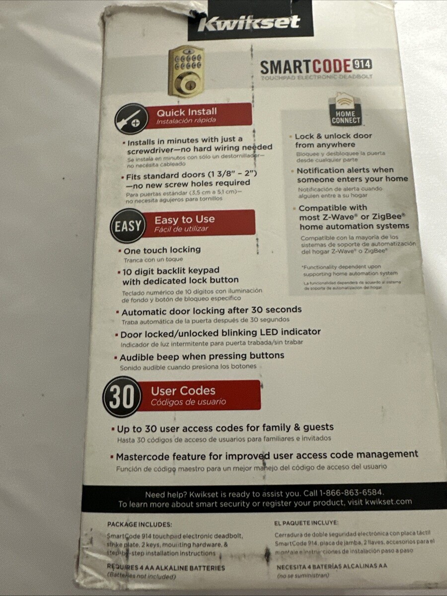 Kwikset Smart Code 914 Electronic Deadbolt 99140-023 open box satin nickel