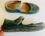 L'Artiste Sz 38 Green Leather Lazarina Mary Jane Flat Shoes Ankle Strap