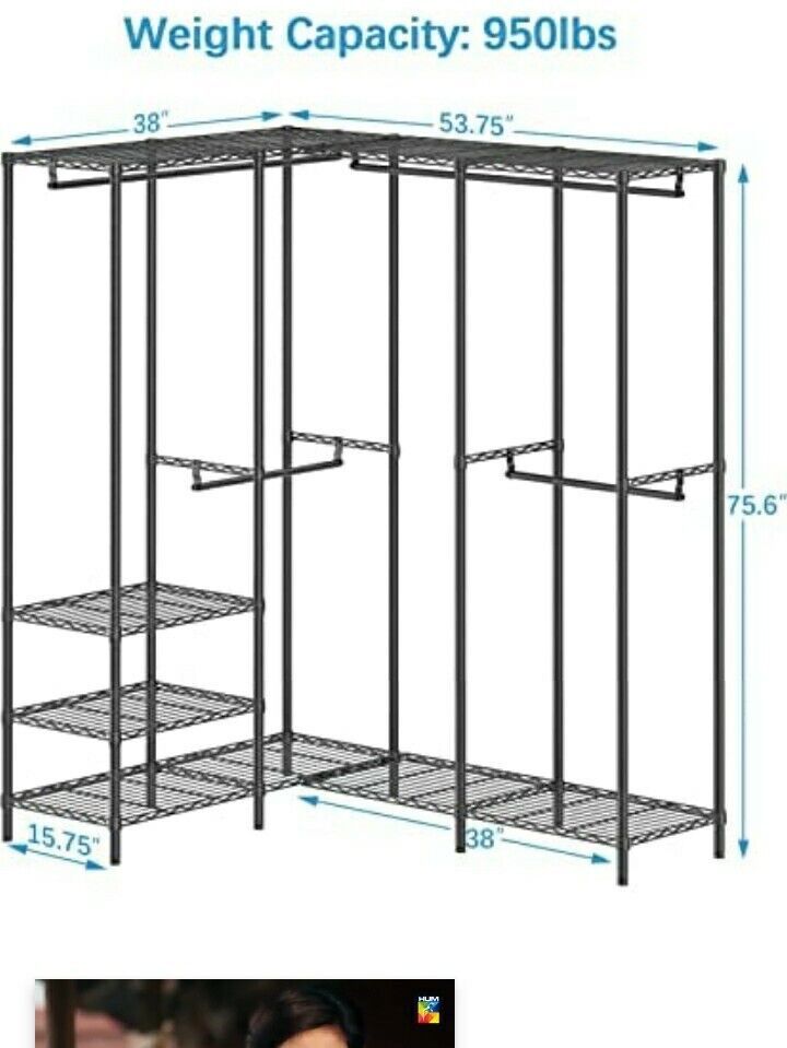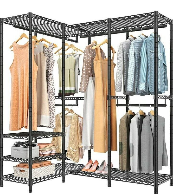 - L Corner Garment Rack with Storage Shelves and Hanging Rod Bedroom wardrobe ar