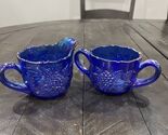 - L E Smith Carnival Glass Sugar & Creamer Cobalt Blue Grape Scalloped Rare