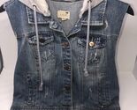 LA Hearts Women’s Sleeveless Vest Blue Denim Button Up Hooded Size Large