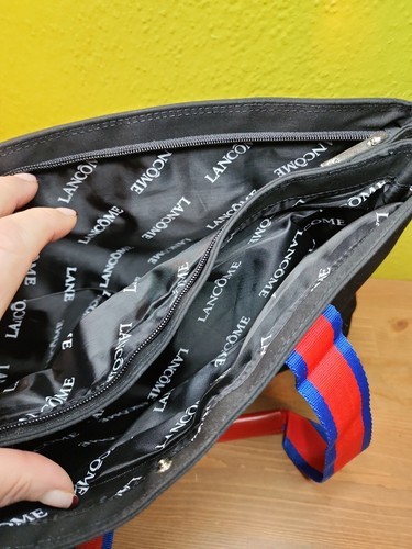 LANCOME Black Red Blue Makeup Tote Beach Bag Snap & Zipper Closure