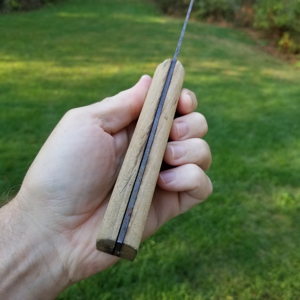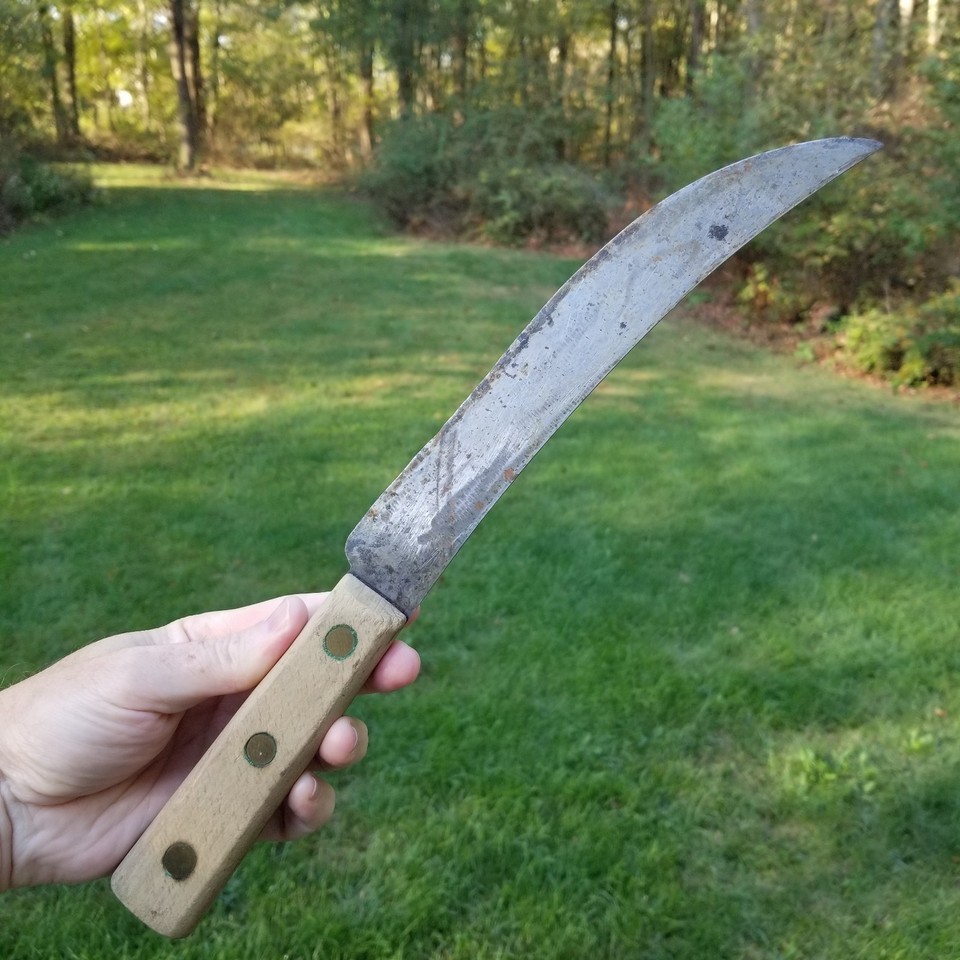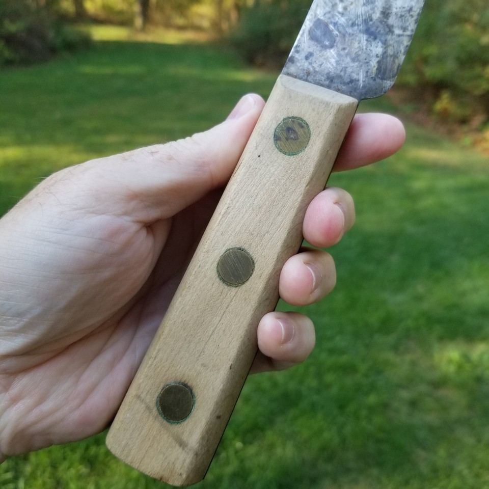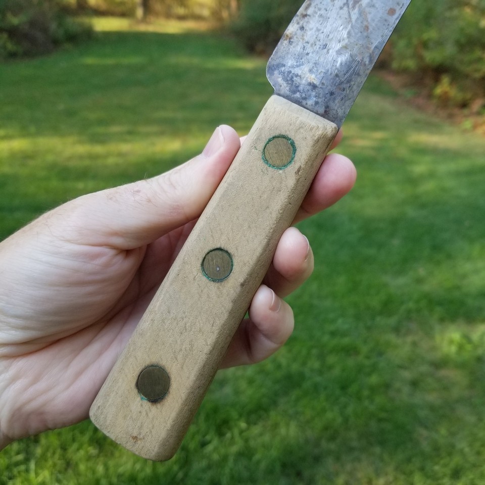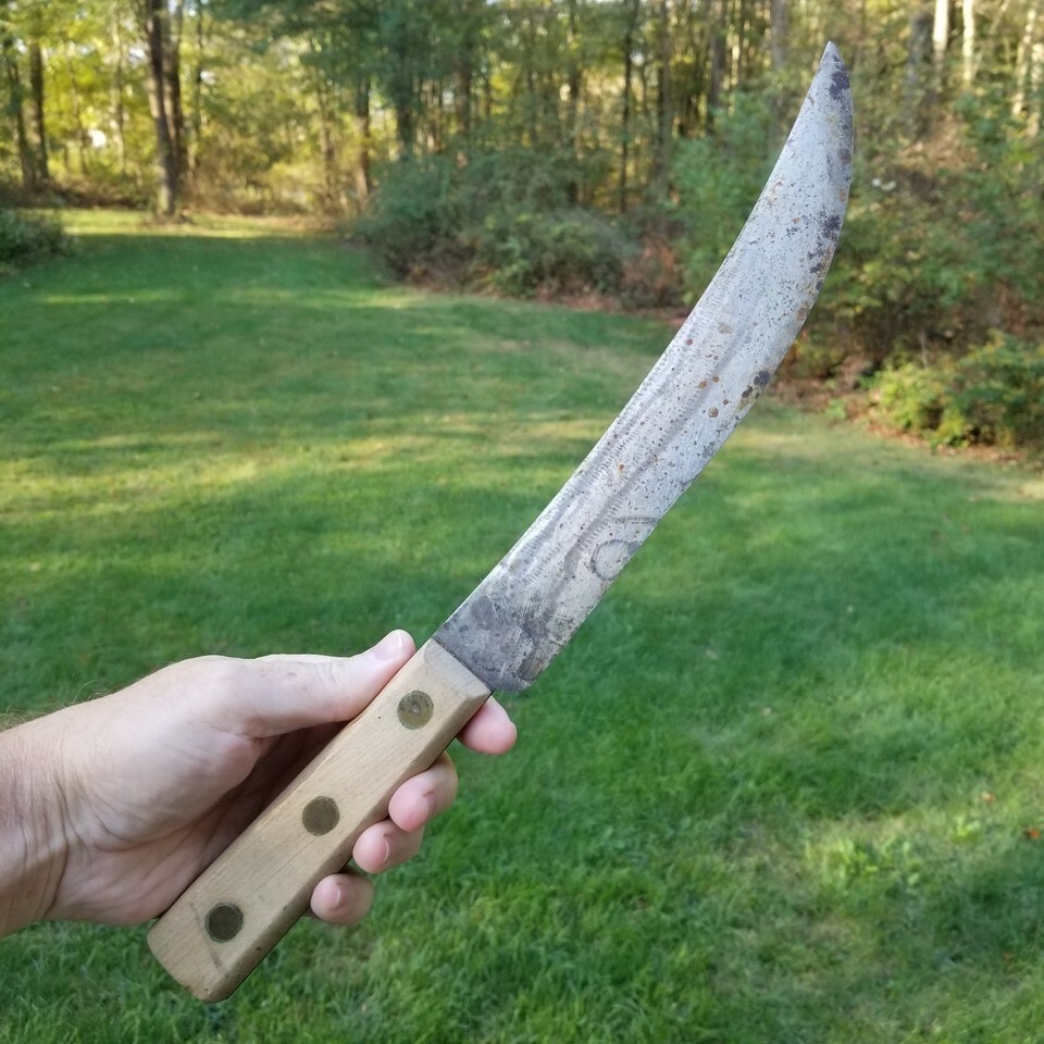 LARGE Butcher Knife 15.5" Vintage Carbon Steel PRIMITIVE copper pins wood