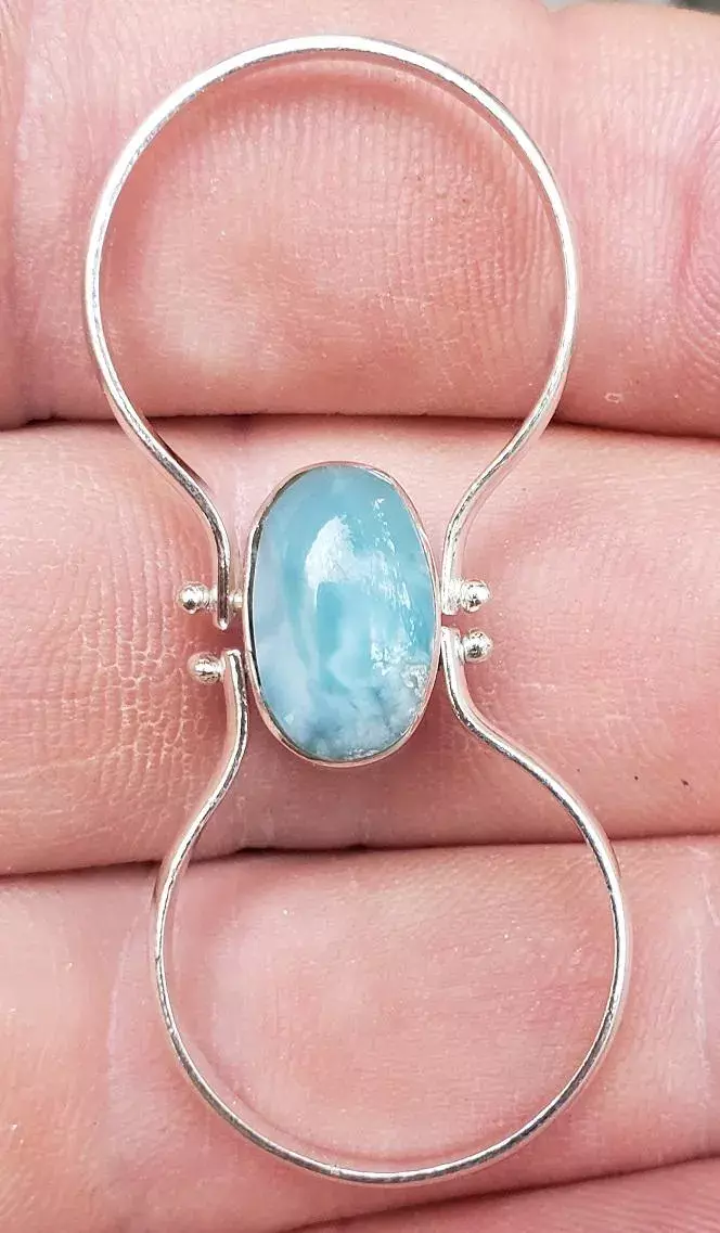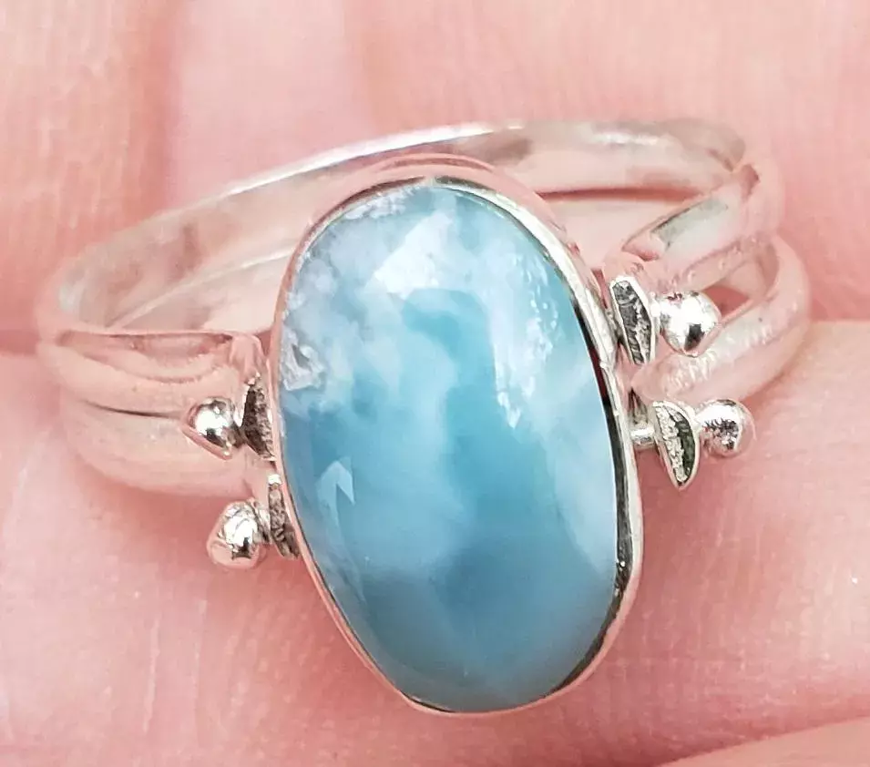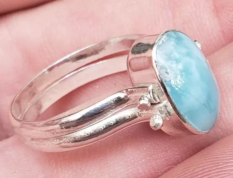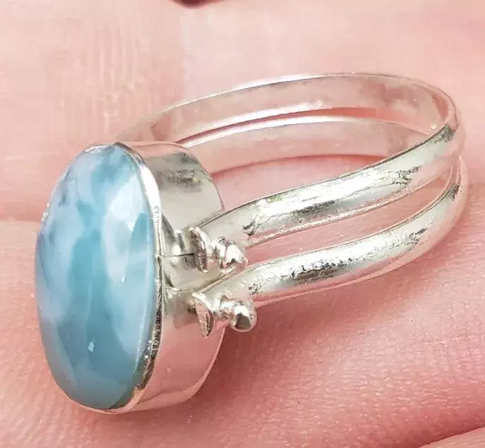 THIS REVERSIBLE RING IS HANDMADE WITH NATURAL LARIMAR - CONCH gemstones and 925 sterling silver.