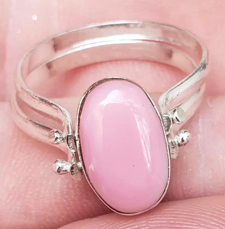 - LARIMAR-CONCH gemstones 925 sterling silver reversible ring size 10 (ww-93)