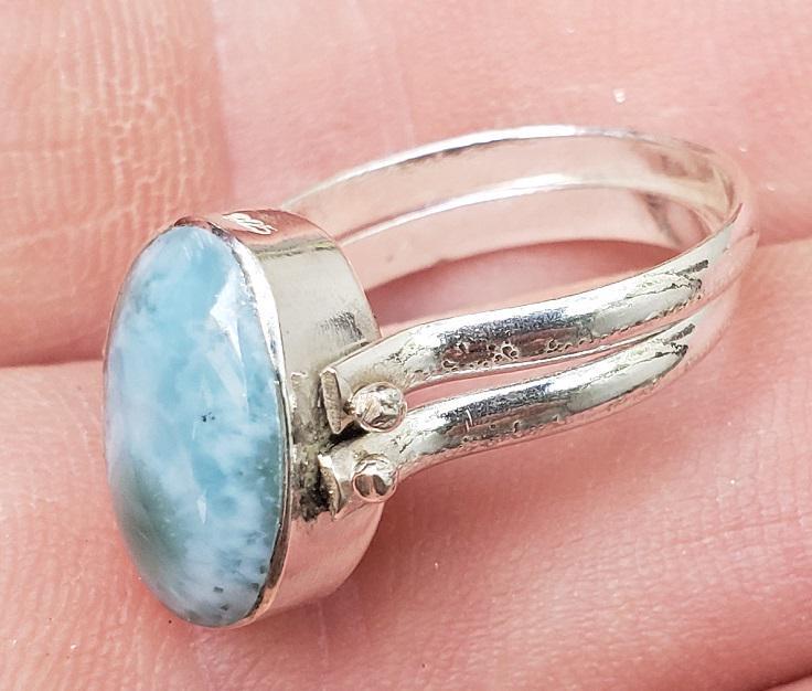 THIS REVERSIBLE RING IS HANDMADE WITH NATURAL LARIMAR - CONCH gemstones and 925 sterling silver.