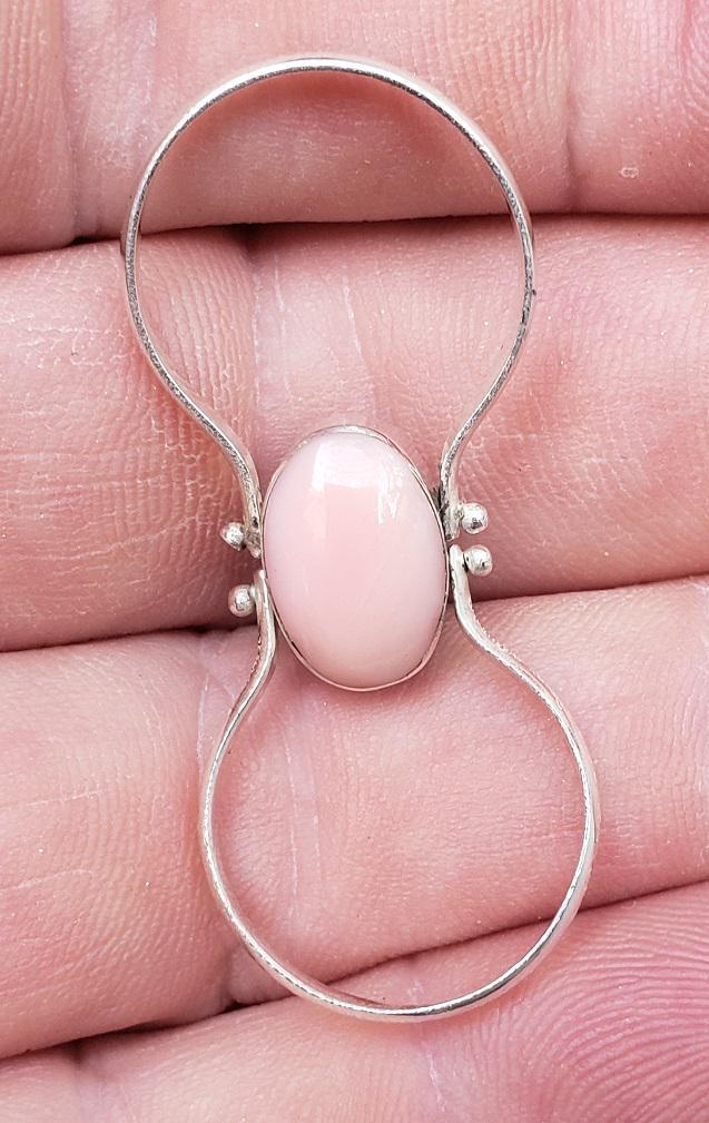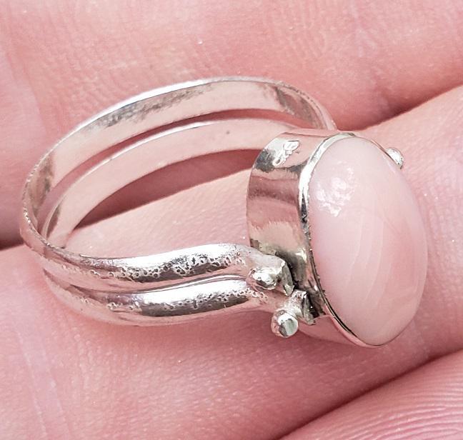 - LARIMAR-CONCH gemstones 925 sterling silver reversible ring size 7.75 ww-91
