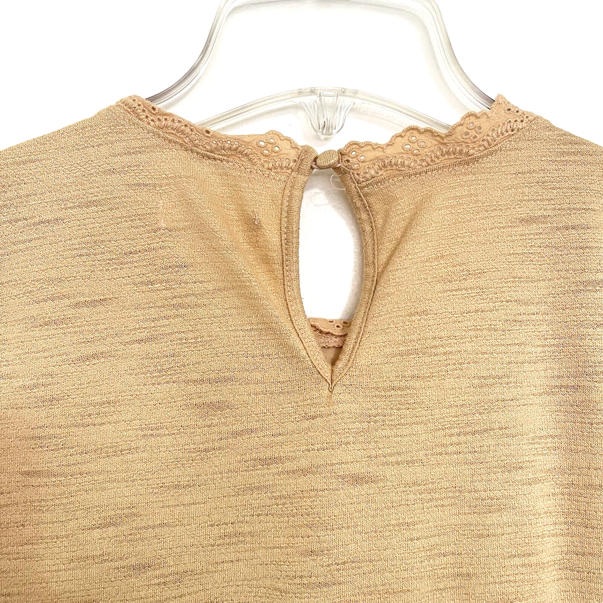 LC Lauren Conrad Y2K Cap Sleeve Babydoll Top Size S Butterscotch Beige Eyelet