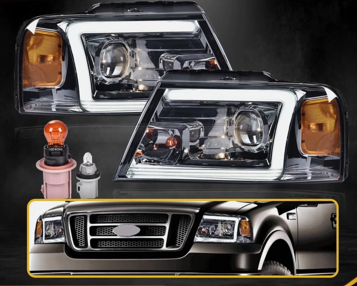 LED DRL Projector Headlight/lamps Chrome/Black Fit For 04-08 Ford F-150/Mark LT