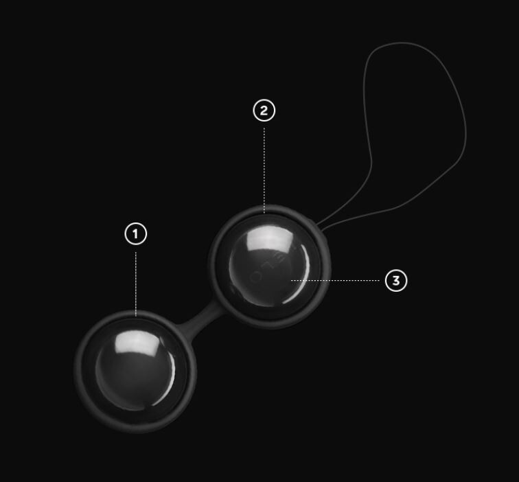 Authentic LELO Luna Beads Noir in black. Classic two-bead Kegel exerciser set made from body-safe silicone and ABS. Ideal for pelvic floor training and discreet pleasure.