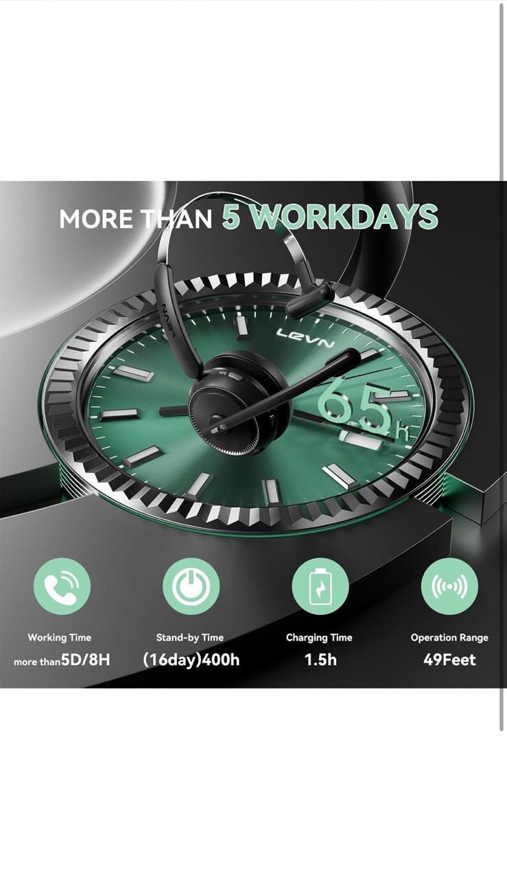 - LEVN Wireless Headset 5.2 for Call Center, Bluetooth Headphones with Mic for...