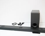Description: Includes Soundbar, Subwoofer, 2 x Power Cables, Remote Control with Batteries, HDMI Cable. Chips on the subwoofer. Scratches on the body of the subwoofer, and dents on the soundbar. Holes in the mesh on the sub.