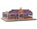 Detailed molded base and building, Die-cast components including roof air conditioner, Three working layouts with extraordinary detail and decoration, Interior lights illuminate layouts, External illumination of "Circle-L" sign, Removable see-through roof allows easy interior access, Ten figures placed throughout shop, Die-cast airplane models hang from ceiling, Painted train models displayed on back shelves, Opening doors