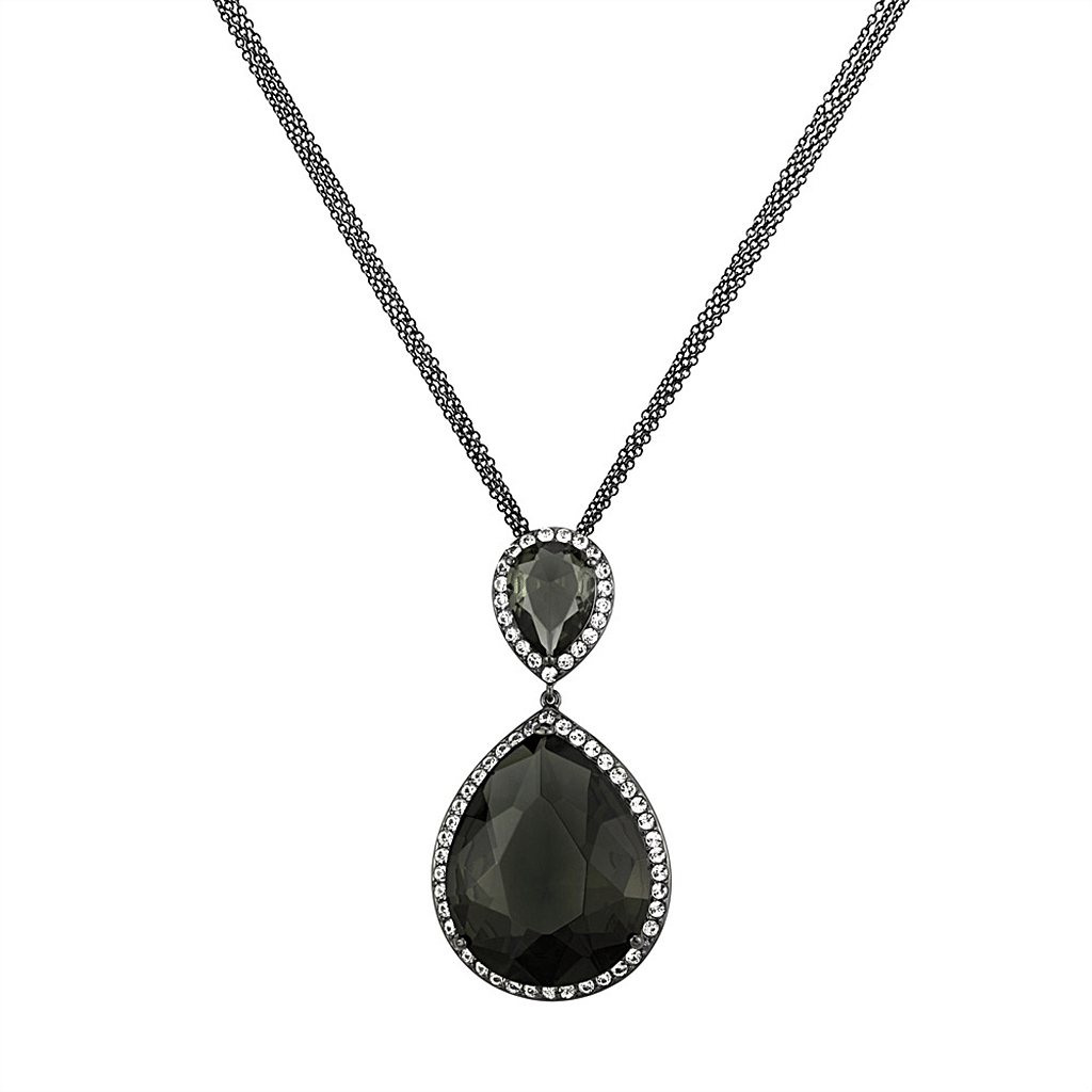 LO3847 - TIN Cobalt Black Brass Chain Pendant with Synthetic Synthetic Glass in